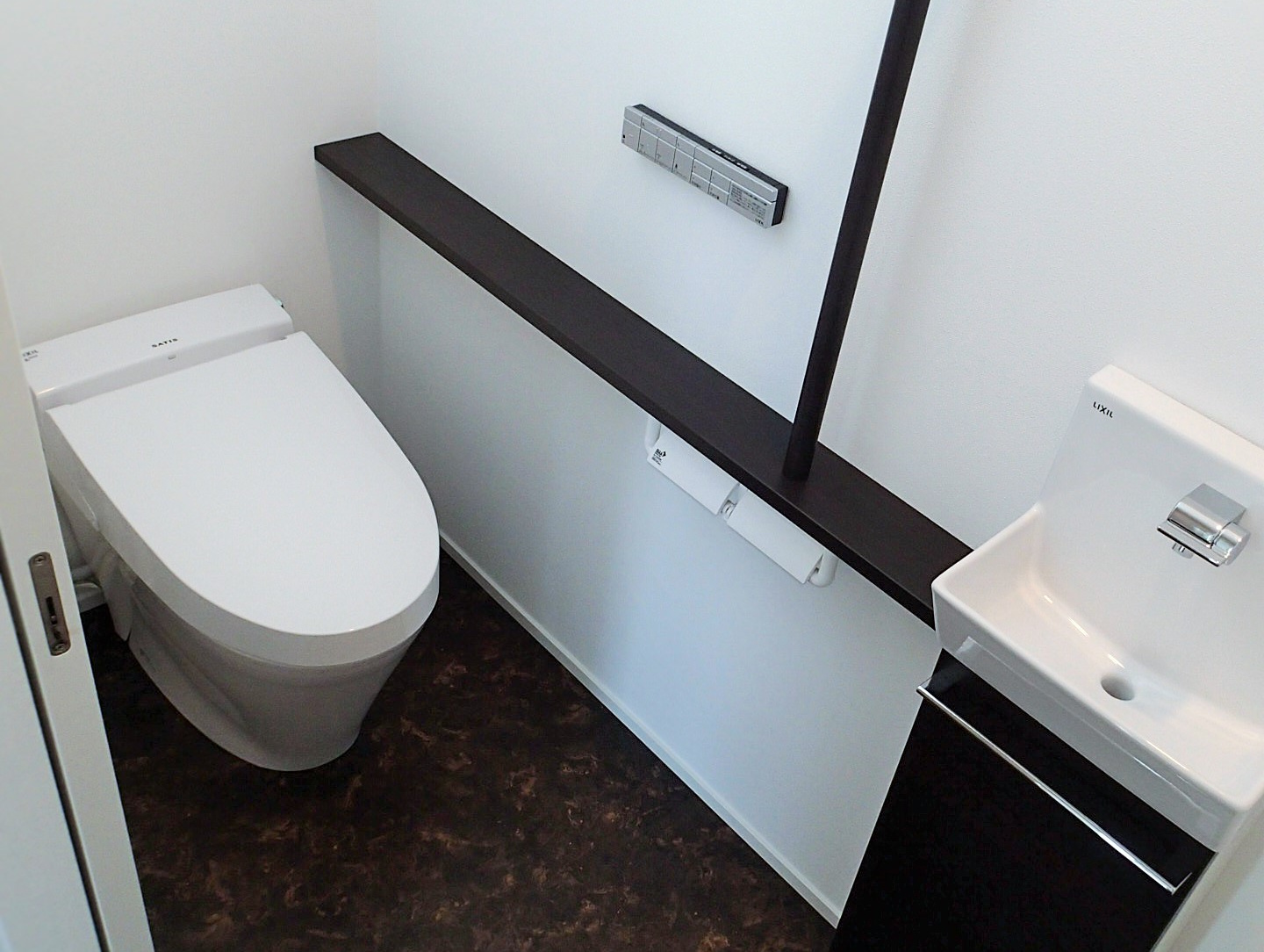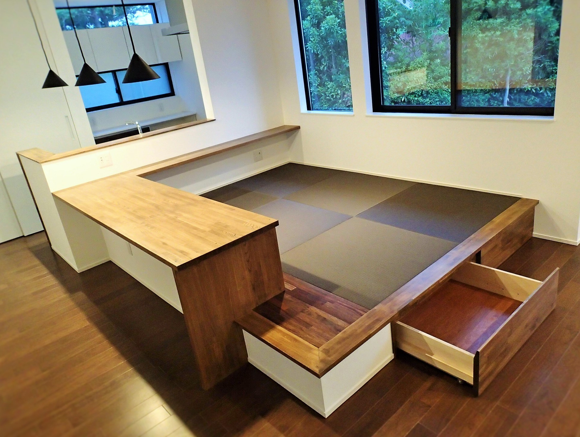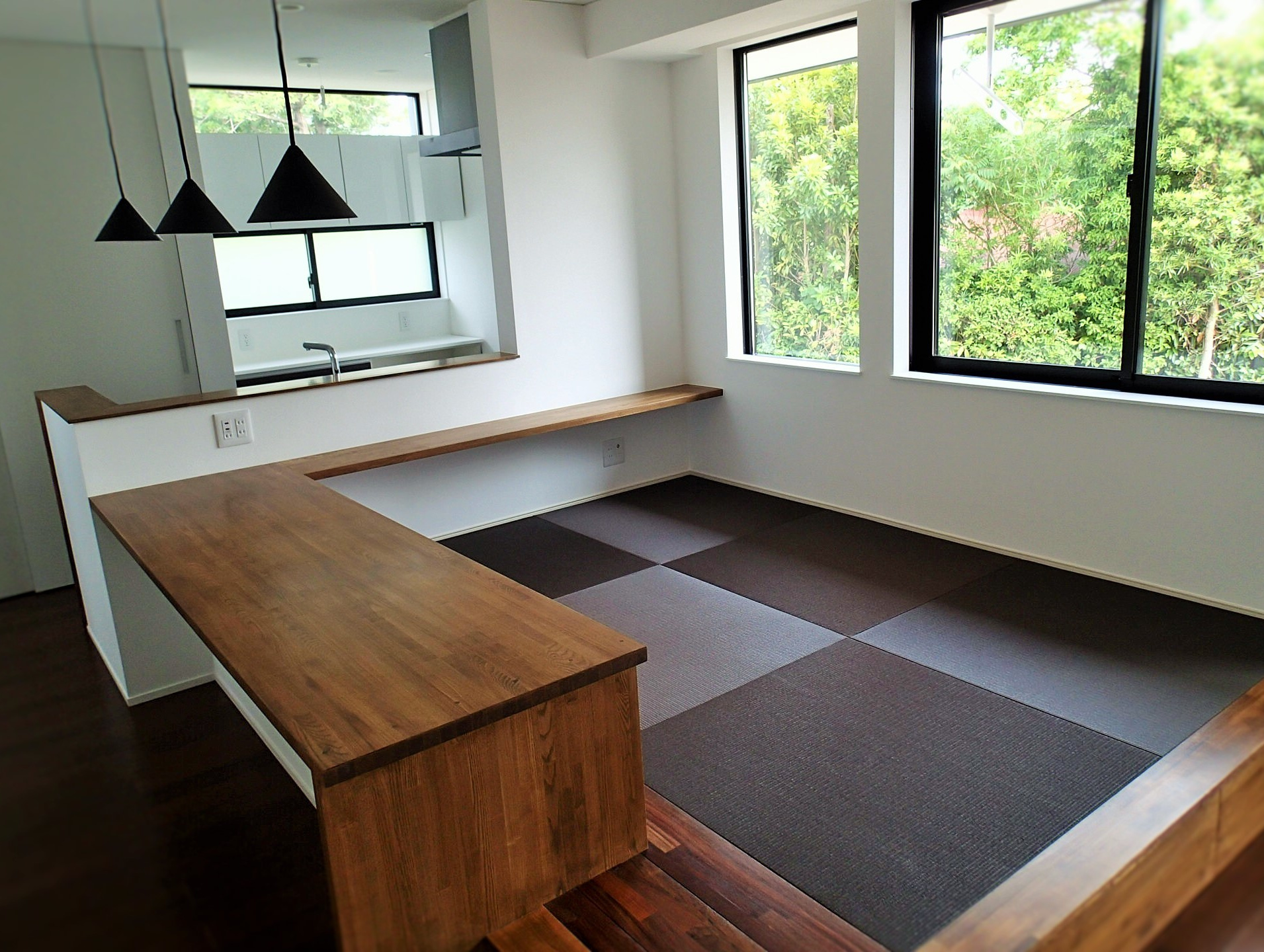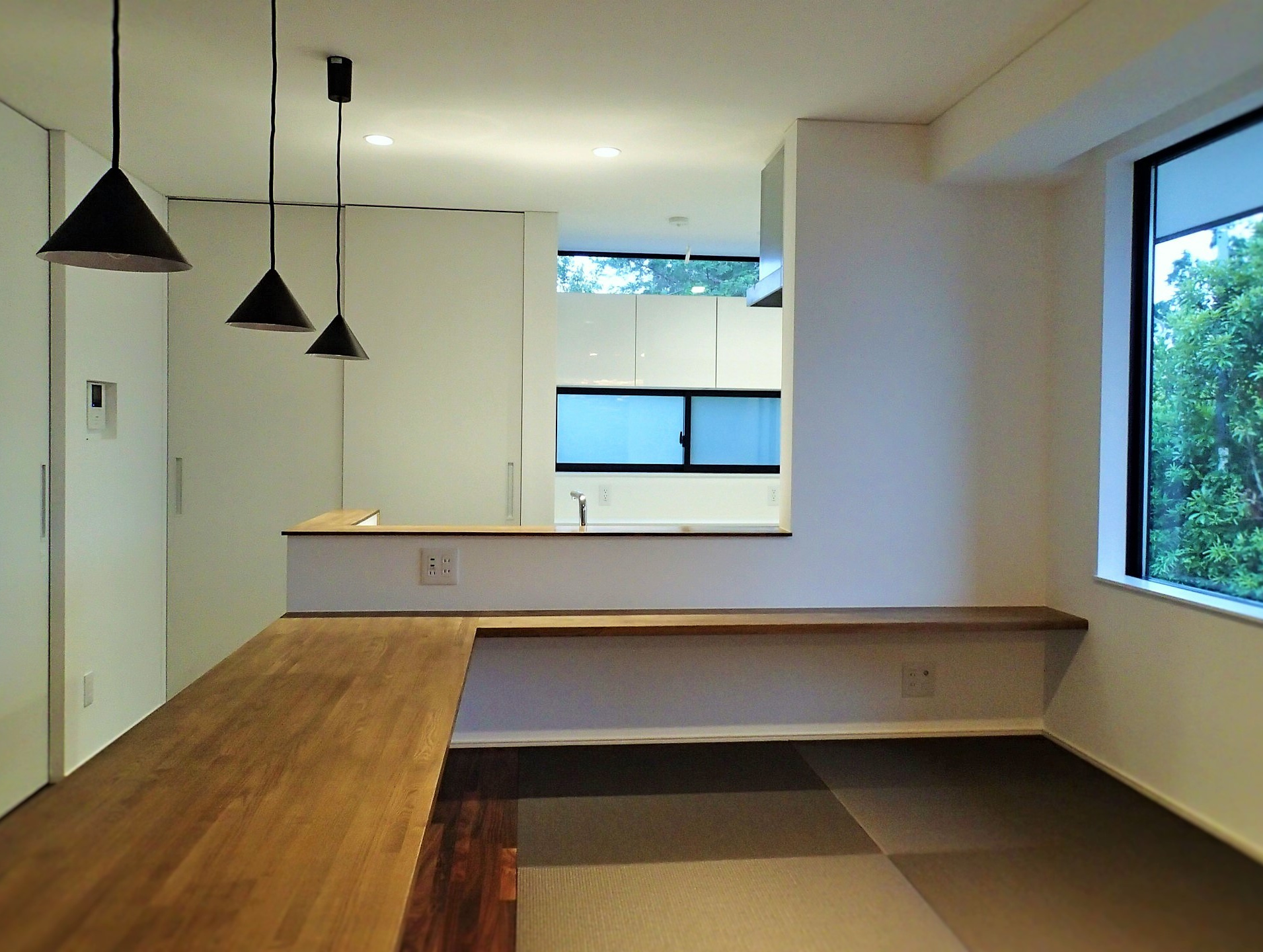 周りは木々に囲まれたのどかな住宅分譲地に計画。南面は景観の開けた好立地であるが、北側隣地及び西側隣地は空きがあるため将来的な部分も考慮した計画が要求された。建物自体のプランニングはシンプルにコストを抑えた計画としたがクライアントのこだわりである「黒」を引き立たせるデザインについてはマテリアルからディテールまで徹底的に検討した。また「黒」における素材のメンテナンス性にも配慮した結果ガルバリウム鋼板の外装材をを採用した。「Black&Wood」と呼ぶにふさわしく人目を惹くクライアント自慢の住宅がここに完成した。