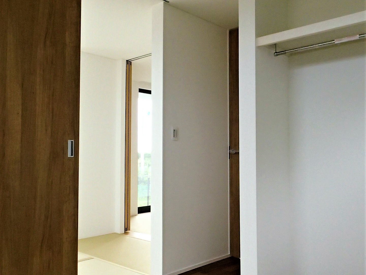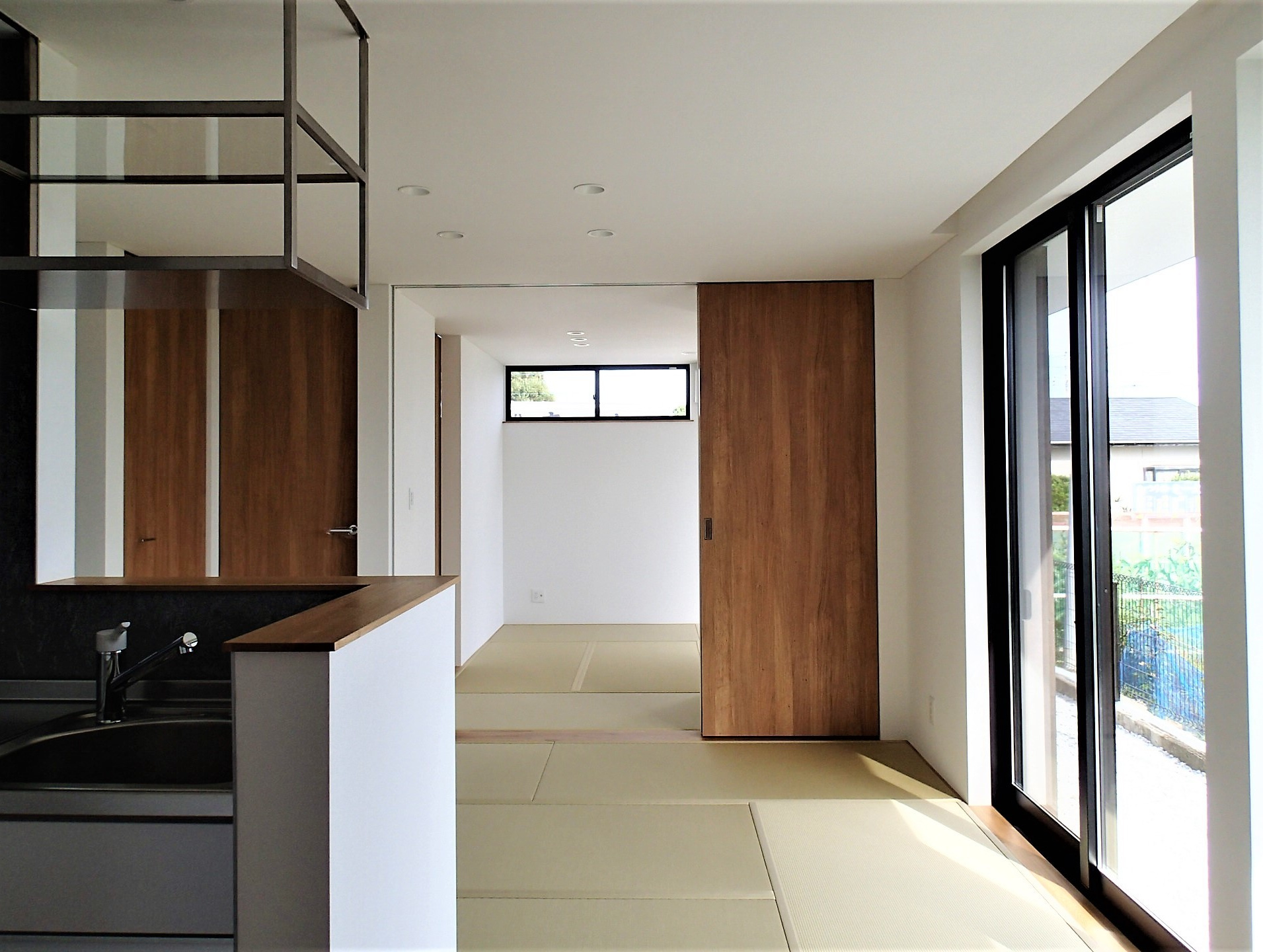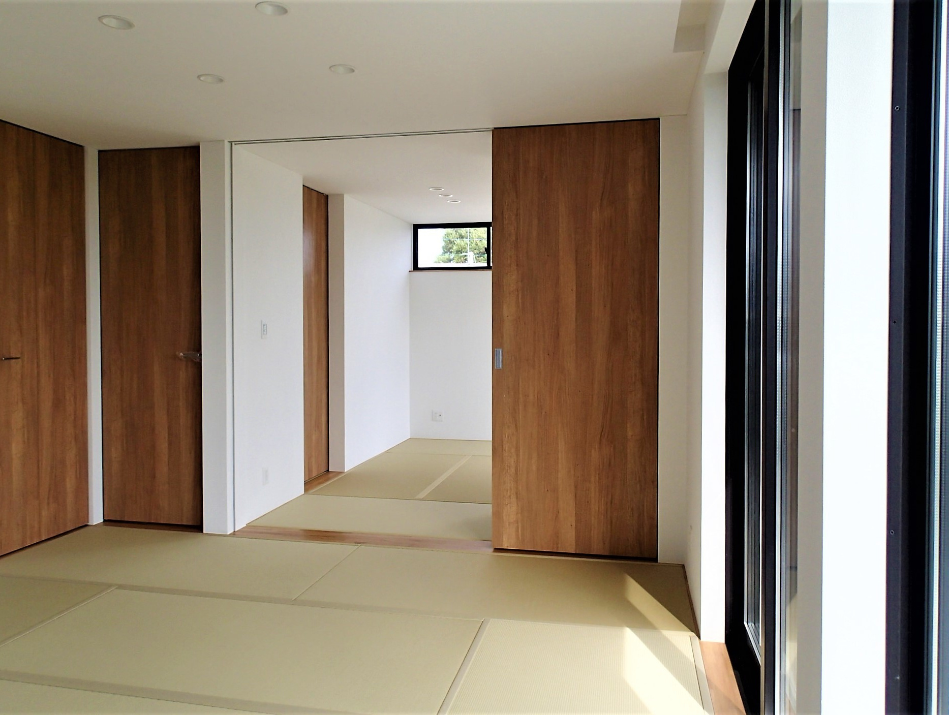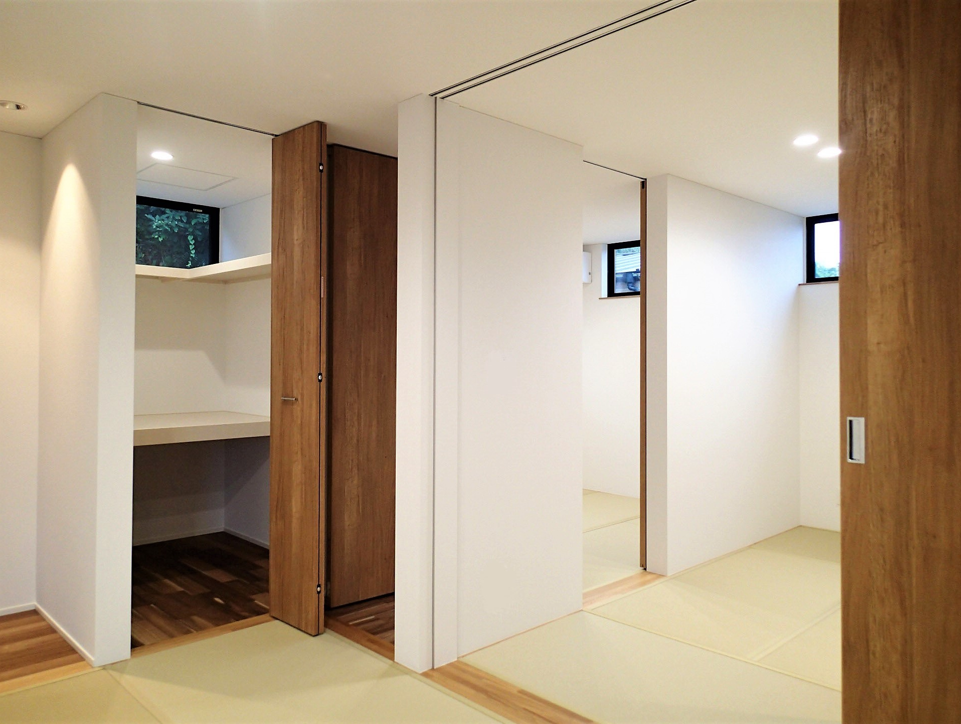 プランニングにおいては必要以上に間仕切る事をせず建具を開閉させる事で室と室を繋げたり切離したりとフレキシブルな計画とした。
