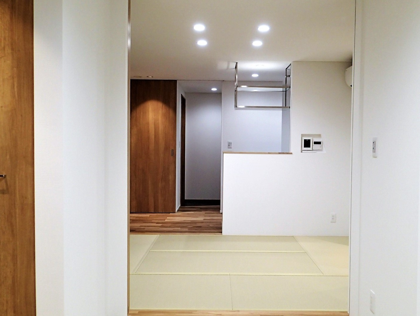 コンセプトはジャンル分けすると「ジャパニーズモダン」畳をベースに木の素材を感じる事ができる様シンプルに装った。