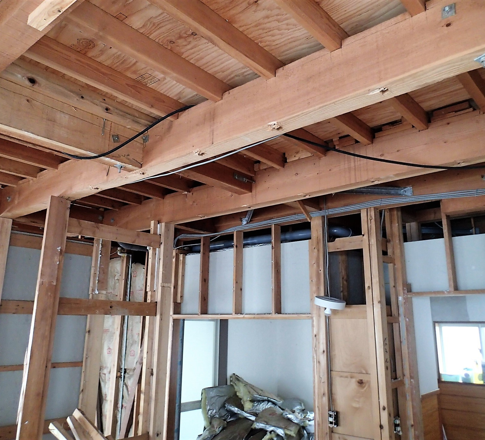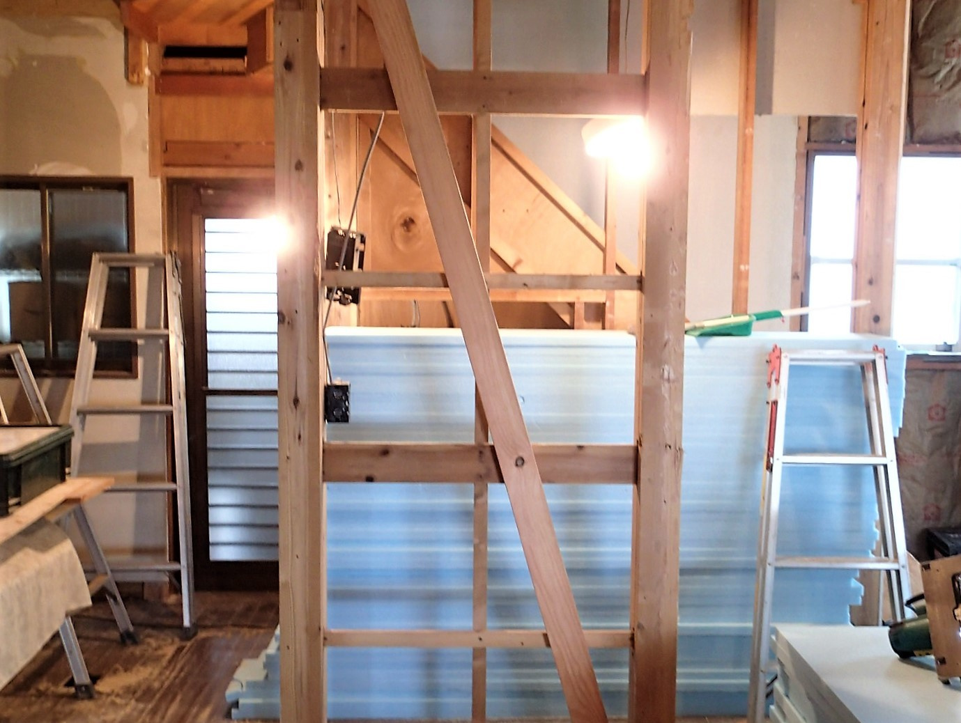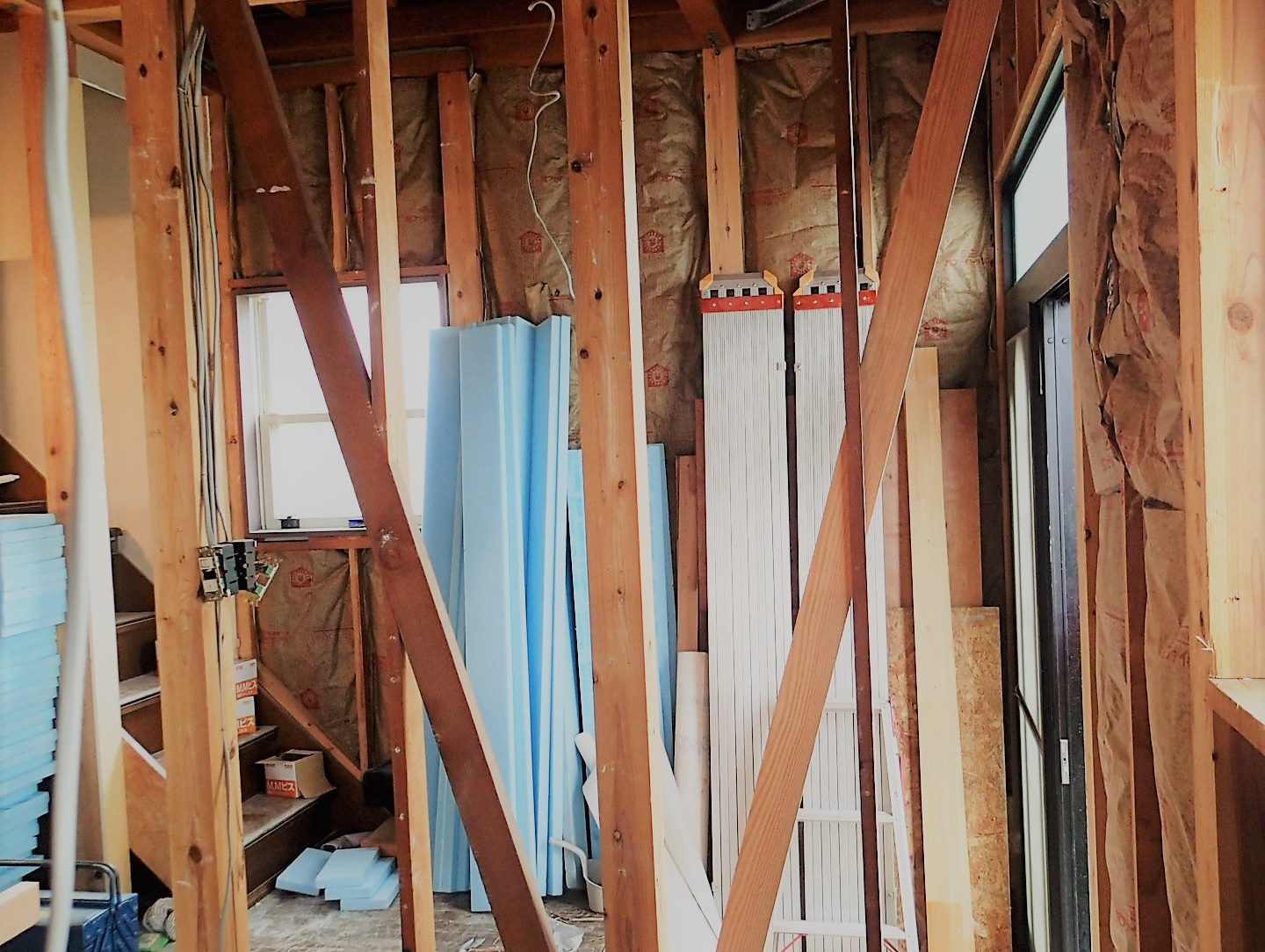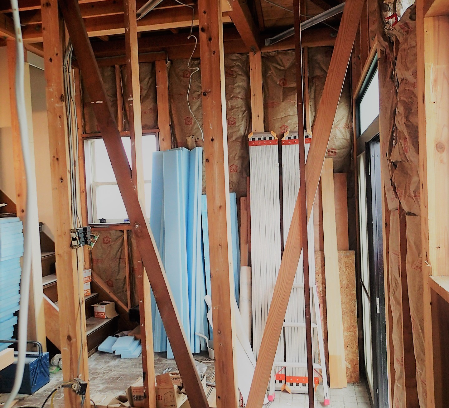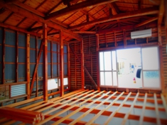 当該物件は築45年の中古物件を購入したクライアントより依頼のあった物件である。当初の依頼は雨漏り相談といった一般的な相談だったが、構造(躯体)を確認時に問題が発覚した。2階床の水平レベルについてだ。原因は無理な間取りと架構(構造計画)による2階床梁のたわみが原因であった。更には耐力壁不足もありこの状態で住み続けるには危険であると判断したのがきっかけである。この様なレベルの住宅が多いとは言えないが昭和56年以前に建てられた建物についてはやはり注意が必要であると痛感させられた。そして早速この耐震改修工事のプロジェクトが始動した。希望は「安全かつ快適に住み続けられるをベースに明るく開放的で館山という街のリゾート感を感じる事が出来る計画が求められた。」スペイン瓦で統一された地中海の街並みにも似た南欧風のイメージに共感できる様インテリアや素材について統一する事でここに完成した。