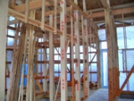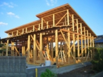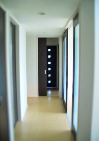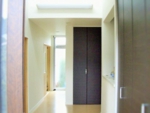 南側前庭にはお施主様のお気に入りの立派な庭園があります。南面を活かしたスタンダードなプランニングとし、夏季の日射を遮るために南面の庇は通常より深い900㎜とし冬季の日差しは効率よく取り入れる工夫をし温熱環境負荷に配慮しました。さらにハイサイドライトを取り入れることで日中は照明設備に頼らない環境にも配慮しました。
