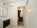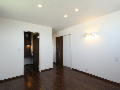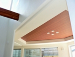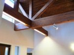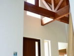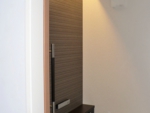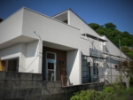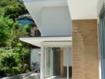 南側隣地は敷地境界まで一杯に建築された2階建の隣家があり南面からの日射が思うように期待できない。更に計画敷地はアプローチからの奥行が長く変形している、「変形敷地」である。また敷地西側は3.5m程度の崖があり通常の計画では、崖の規制により建築面積のボリュームを想定するのに限界がありました。この条件の中駐車スペース、アプローチ計画、どうクリアするかが課題となった物件です。